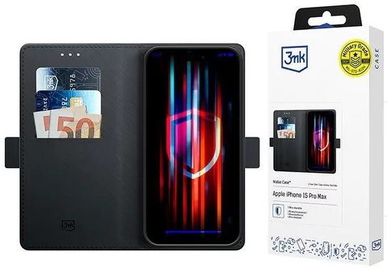 3MK oldalra nyíló tok iPhone 15 Pro Max 6.7", fekete