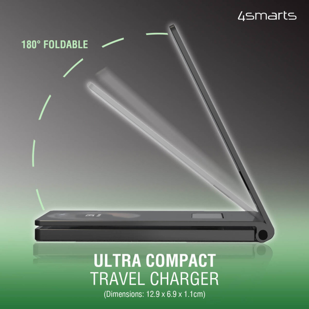 - Összecsukható: A töltőállomás használaton kívül gyorsan összecsukható és helytakarékosan tárolható. Ezáltal nemcsak otthon, hanem útközben is tökéletes kütyüvé válik.