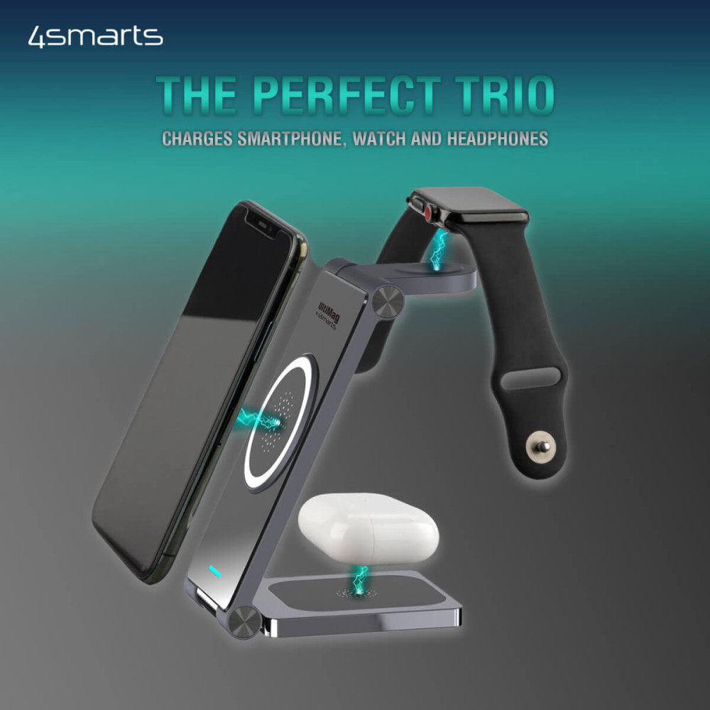 - 3in1 vezeték nélküli töltő: Nincs többé kusza kábel! Töltse qi-képes okostelefonját, induktív TWS fejhallgatóját és okosóráját okosan és gyorsan. Egyszerűen tartsa a készülék hátoldalát a töltőfelülethez, és a töltési folyamat automatikusan elindul.