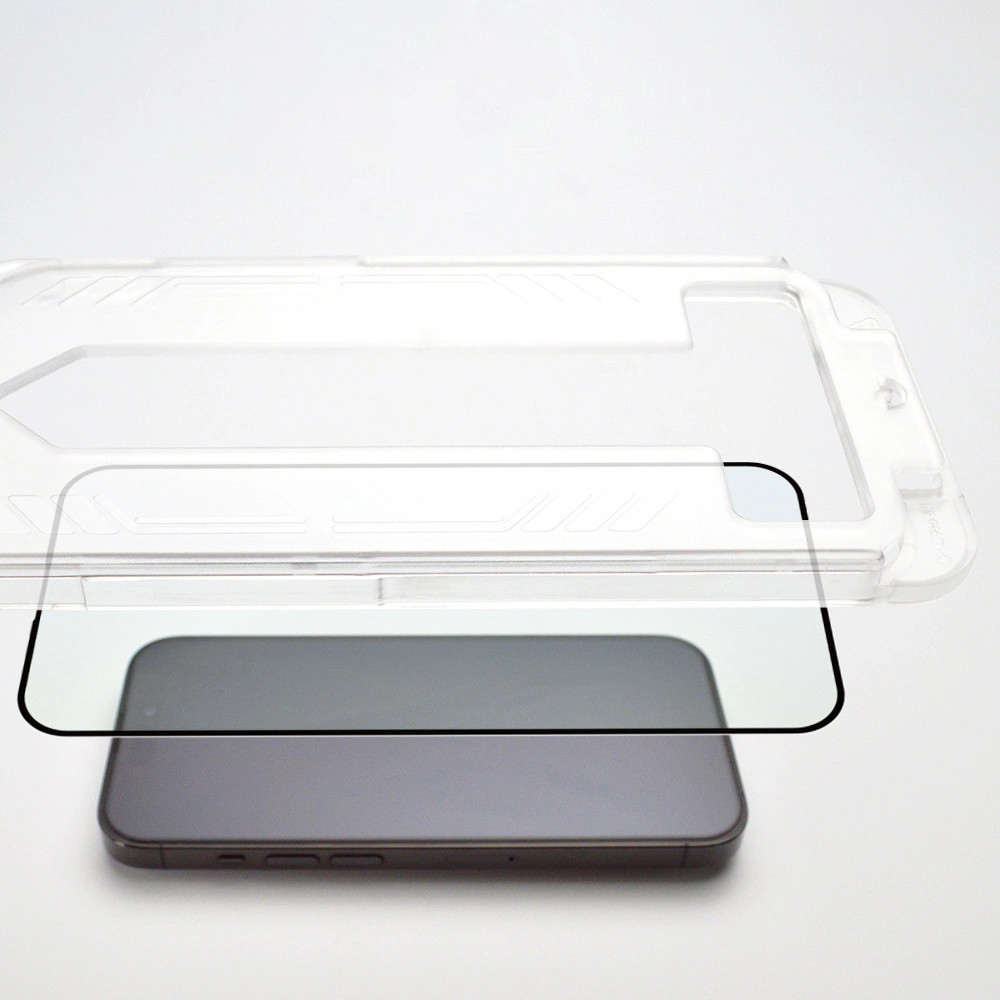 Edzett üveg gyors rögzítőkerettel iPhone 15 Plus-hoz - fekete