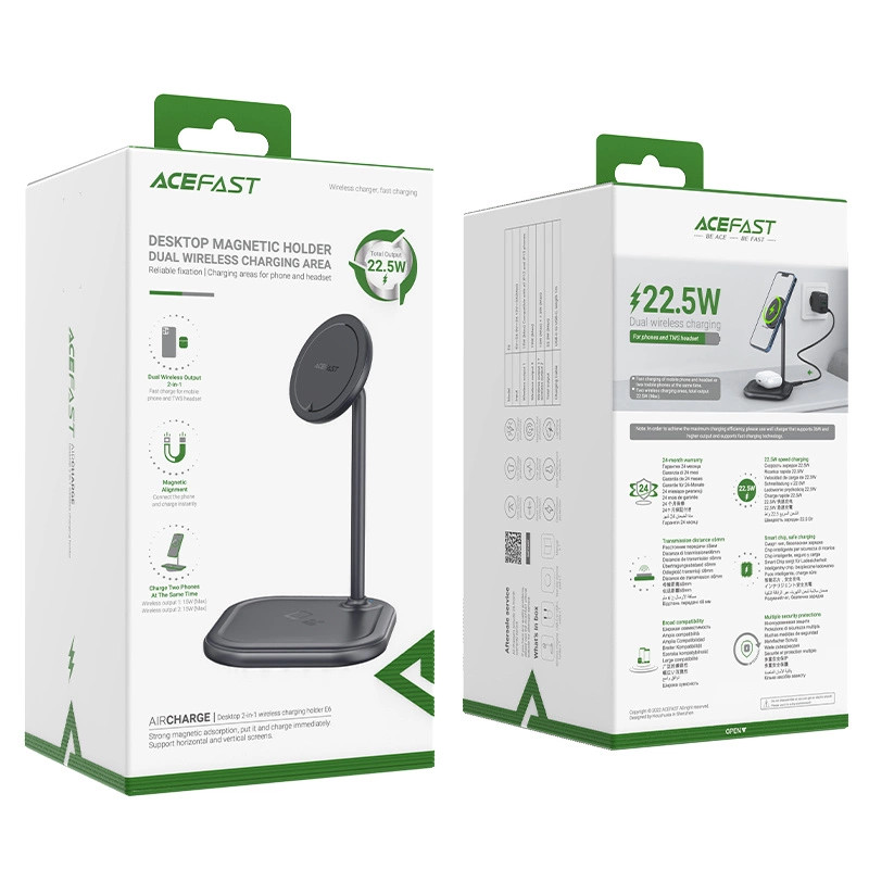 - Modell: E6 asztali két az egyben vezeték nélküli töltőállvány