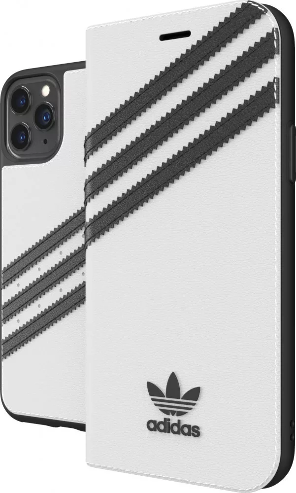 Adidas Original Booklet Case iPhone 11 Pro Max oldalra nyíló tok, fehér-fekete