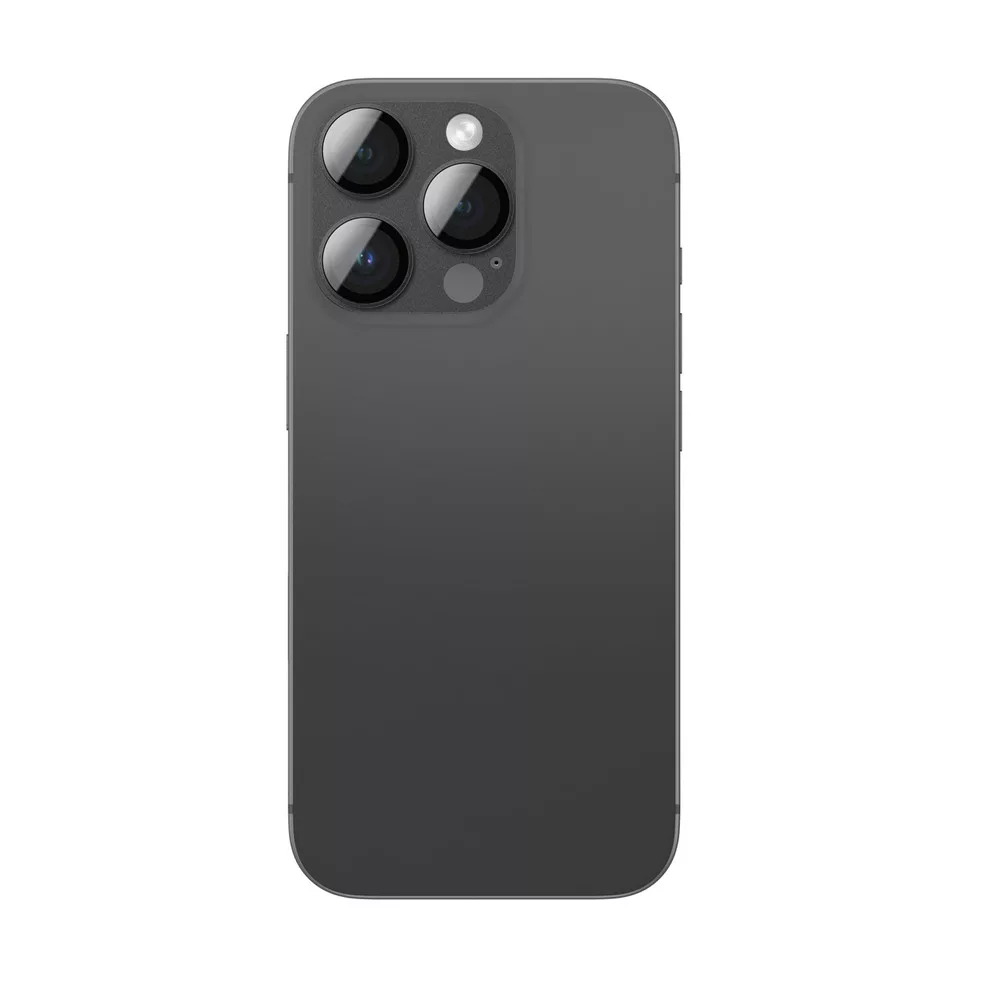 AmazingThing repülőgép-minőségű ötvözetű edzett üveglencse az iPhone 16 Pro / 16 Pro Max kameralencséjéhez - fekete