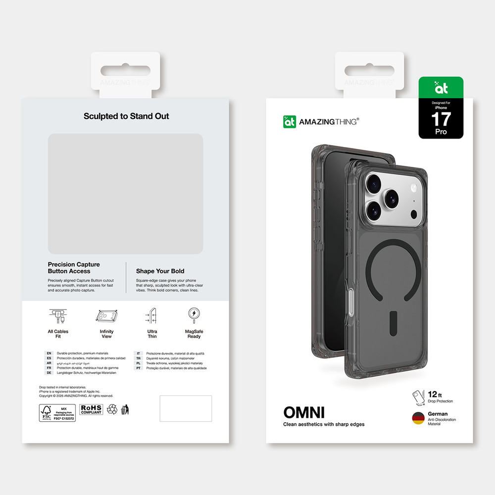 Az AmazingThing Omni tok elegáns védelmet nyújt az iPhone 17 Pro számára modern csavarral. A vékony, ultravékony kialakítás minimális többletet ad, míg az éles vonalak és a szögletes élek jellegzetes karaktert kölcsönöznek neki. A kiváló minőségű anyagok biztosítják a tartósságot és a mindennapi használattal szembeni ellenállást. A tok hatékonyan védi a készüléket akár 3,6 m magasról történő leesések ellen, növelve a biztonságot minden helyzetben. Az Omni modell teljes mértékben kompatibilis a MagSafe technológiával, lehetővé téve a mágneses töltők és kiegészítők használatát a tok eltávolítása nélkül. A klasszikus fekete kivitel stílusos és sokoldalú megjelenést kölcsönöz a telefonnak.