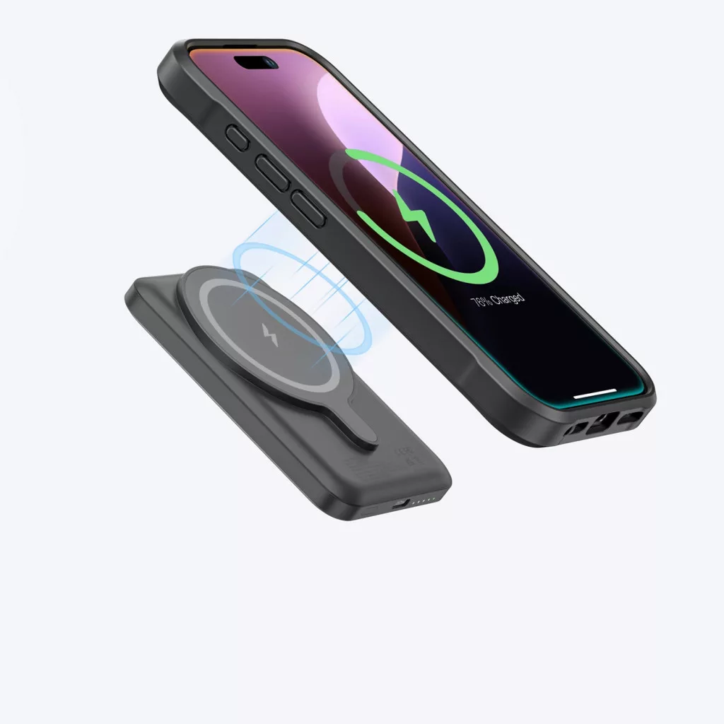 A beépített mágneses rendszer stabil csatlakozást tart fenn a kompatibilis tartókhoz és töltőkhöz anélkül, hogy elmozdulna.