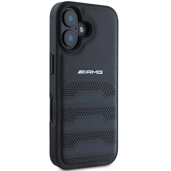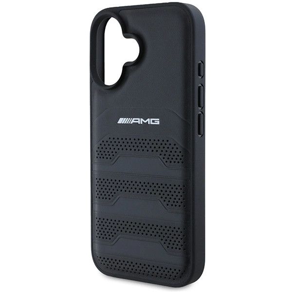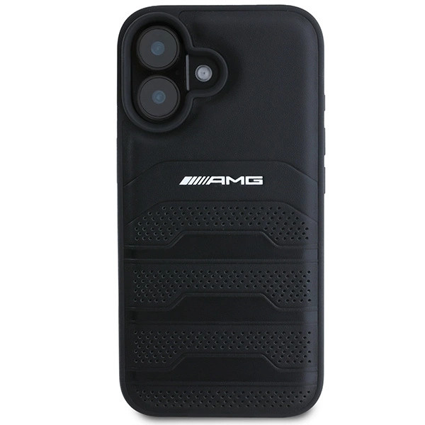 AMG AMHCP16SGSEBK iPhone 16, 6.1" tok, fekete Leather Debossed Lines tok, fekete Logo