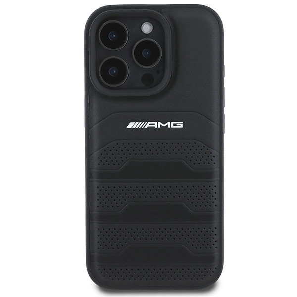 AMG AMHCP16XGSEBK iPhone 16 Pro Max 6.9" tok, fekete Leather Debossed Lines tok, fekete Logo