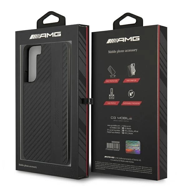 AMG AMHCS22MBLSCA Samsung Galaxy S22 Plus, hátlap, tok Carbon Stripe&Embossed, fekete