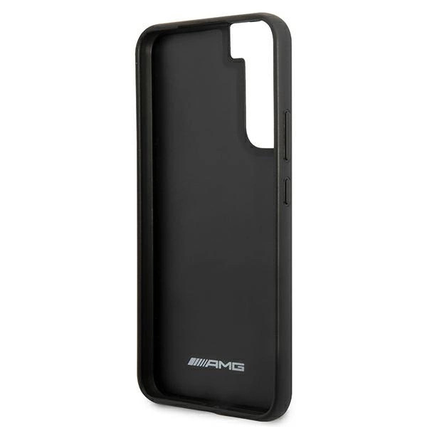 AMG AMHCS22MGSEBK Samsung Galaxy S22 Plus, hátlap, tok bőr dombornyomott vonalakkal, fekete