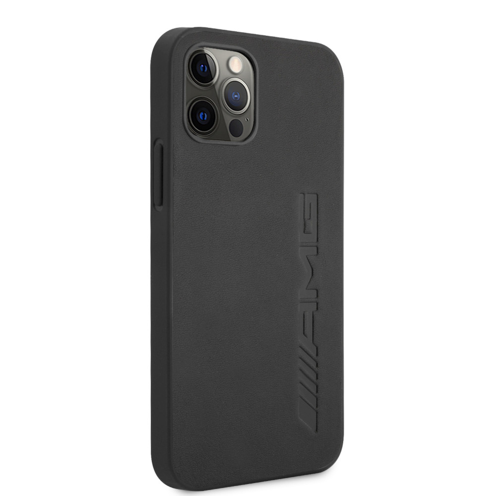 AMG iPhone 12 Pro Max Leather Hot Stamped eredeti bőr (AMHCP12LDOLBK) hátlap, tok, fekete