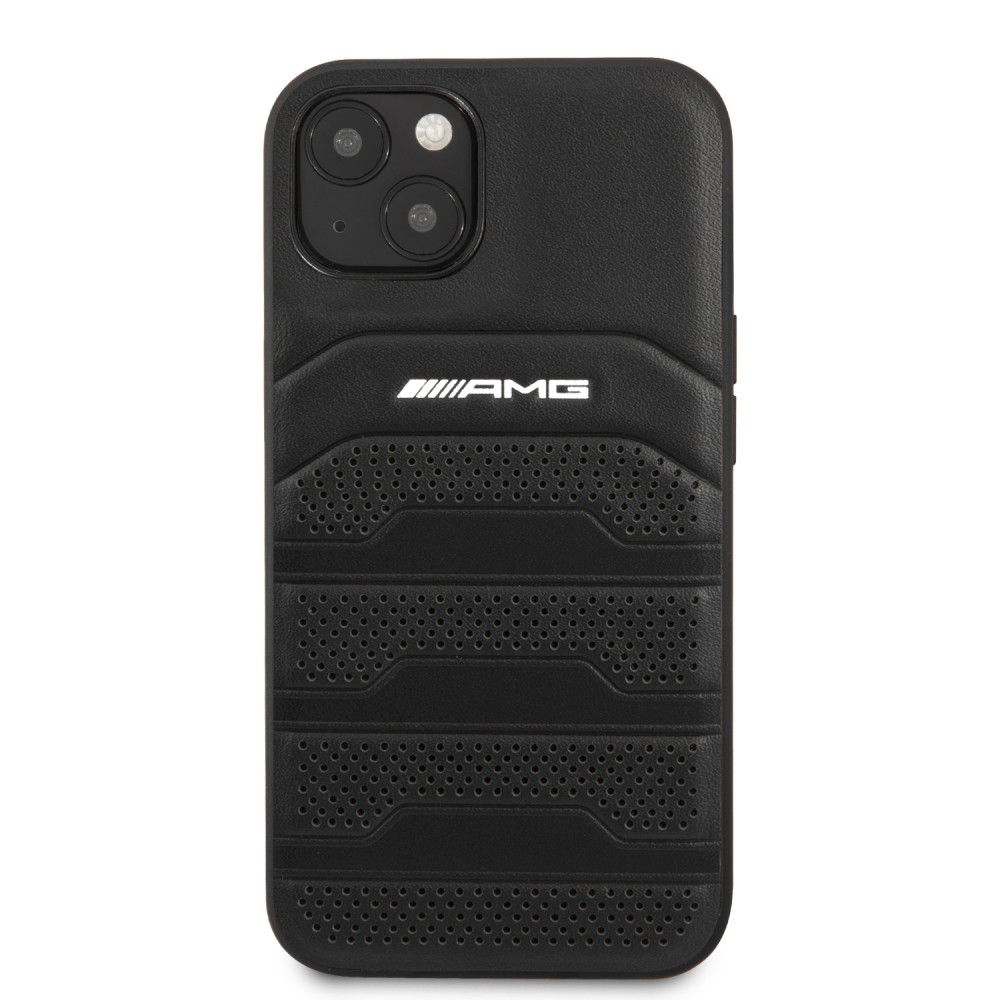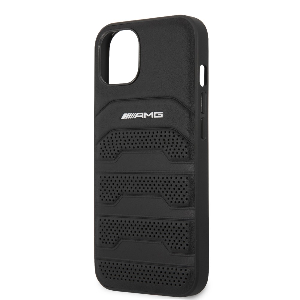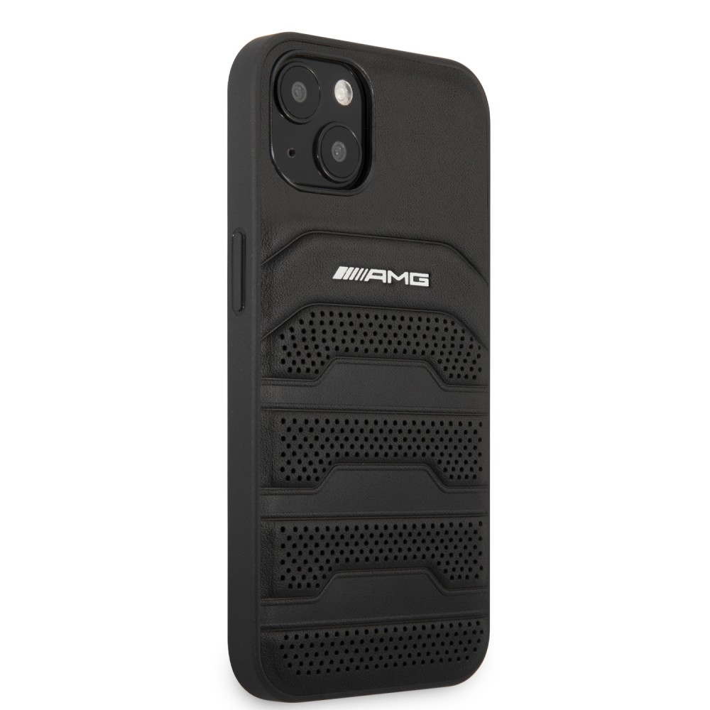 AMG iPhone 13 Leather Debossed Lines eredeti bőr (AMHCP13MGSEBK) hátlap, tok, fekete