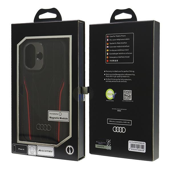 Audi Genuine Leather MagSafe iPhone 16 6.1" tok, fekete-piros AU-TPUPCMIP16-R8/D3-RD
