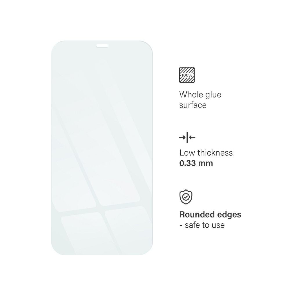 Az üveg megvédi a képernyőt a repedések, karcolások és sérülések ellen. Az oleofób bevonat biztosítja a képernyő tisztaságát és az ujjlenyomatokkal és szennyeződésekkel szembeni ellenállást.