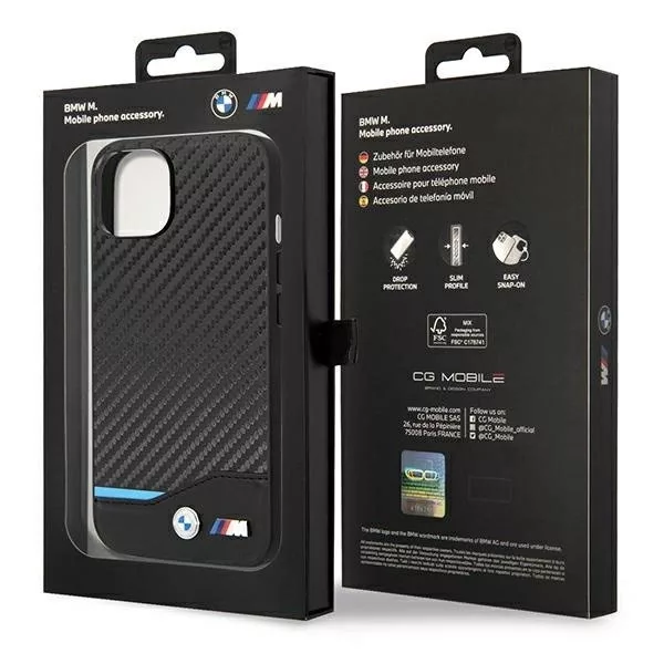 Az exkluzív BMW Leather Carbon keménytokos tok polikarbonát (hátlap), karbonszövet és természetes bőr kombinációjából, a szélek pedig rugalmas poliuretánból készülnek, ami védelmet és könnyű összeszerelhetőséget biztosít. A BMW ismert és elismert elegáns formatervezéséről és tökéletes kivitelezéséről. A tokot a BMW márkával egybeépített, melegen préselt kék csík díszíti. A finom bőr és a stílusos részletek teszik a kollekciót, hogy minden készüléknek klasszikus, elegáns formát adjon, az egésznek a csúcspontja, és a minőséget a fém BMW logó is megerősíti.