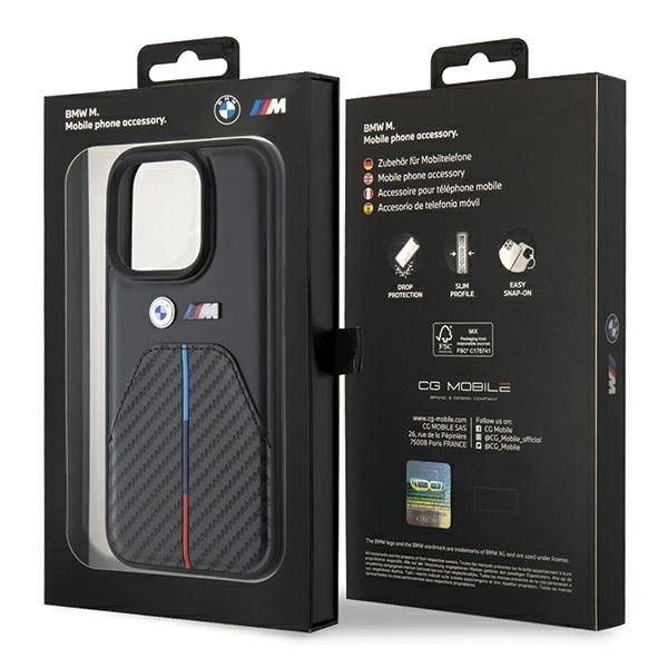 BMW BMHCP15L22NSTB Stamped Tricolor Stripe iPhone 15 Pro 6.1" tok, fekete