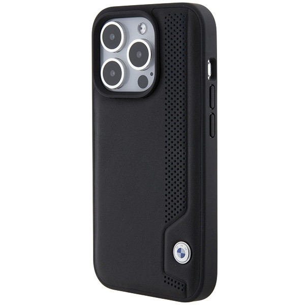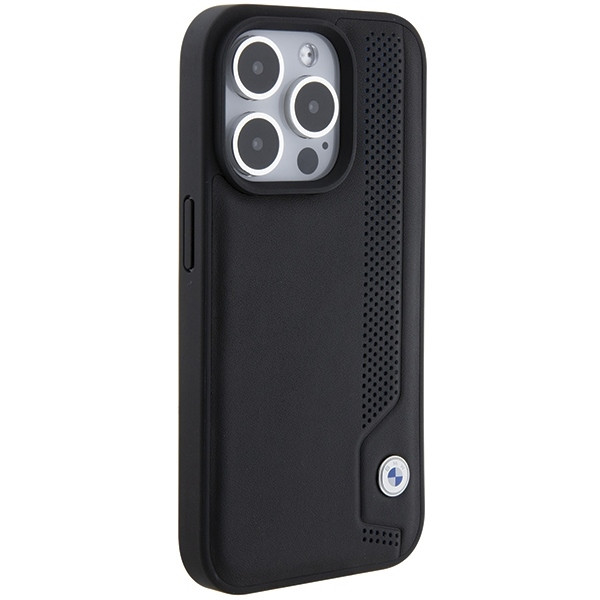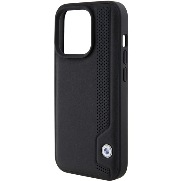 A külső anyagot egy kiemelkedő csík kis kék pöttyökkel és varrással díszíti, amely egyedi karaktert ad a toknak. A hátoldalon található BMW embléma az egész megjelenésnek elegáns stílust kölcsönöz.
