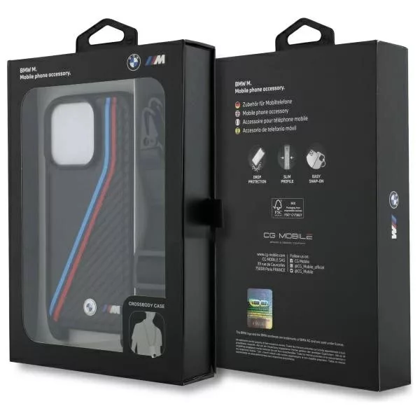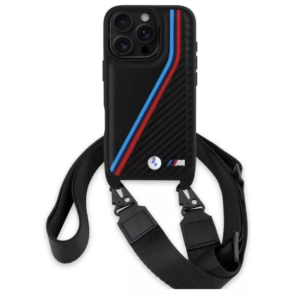 BMW BMHCP16L23PSVTK iPhone 16 Pro 6.3", tok, fekete M Edition Carbon Tricolor Lines & Strap
