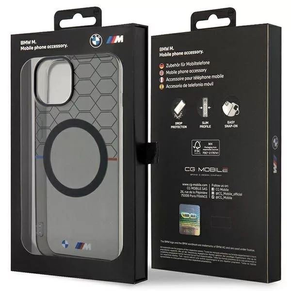 A tok gyártásánál az IMD (In-Mould-Decoration) technológiát alkalmazták. A grafikákat forró dombornyomással, majd egy finom TPU réteggel vonják be, ami ellenállóvá teszi őket a kopással szemben. Az exkluzív tokot a borítás felső részén egy figyelemfelkeltő hatszög motívum díszíti, az alsó részen pedig egy kis BMW logó és az M Performance csomag található - ezek is a termék legmagasabb minőségét és eredetiségét igazolják.