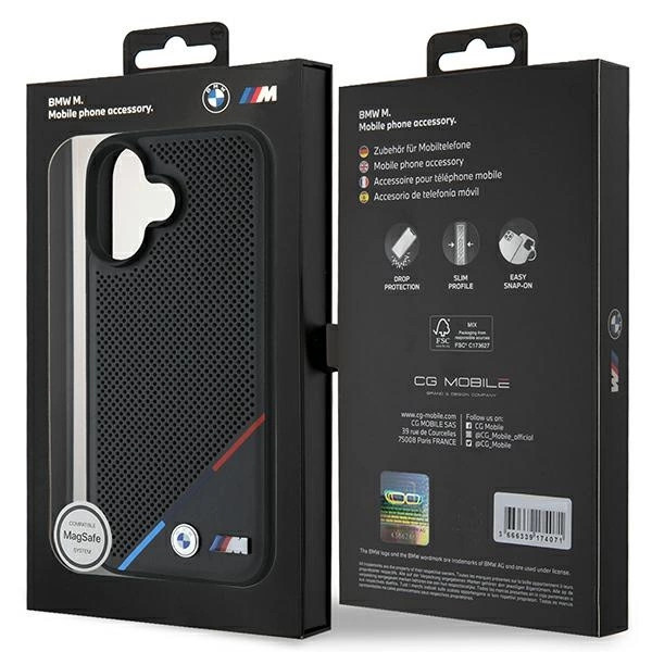 BMW BMHMP16M23PUPDK iPhone 16 Plus 6.7" tok, fekete M Perforated Tricolor Line MagSafe