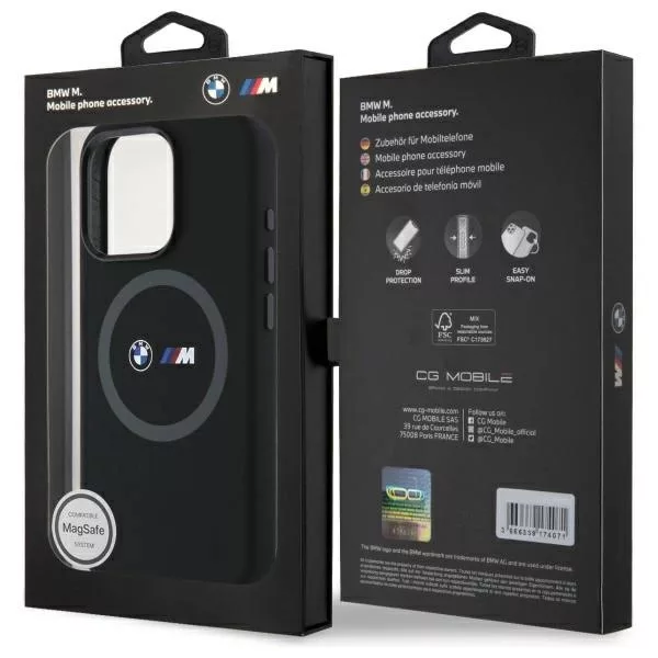 BMW BMHMP16X23SROK iPhone 16 Pro Max, 6.9" tok, fekete M Silicone Printed Ring MagSafe