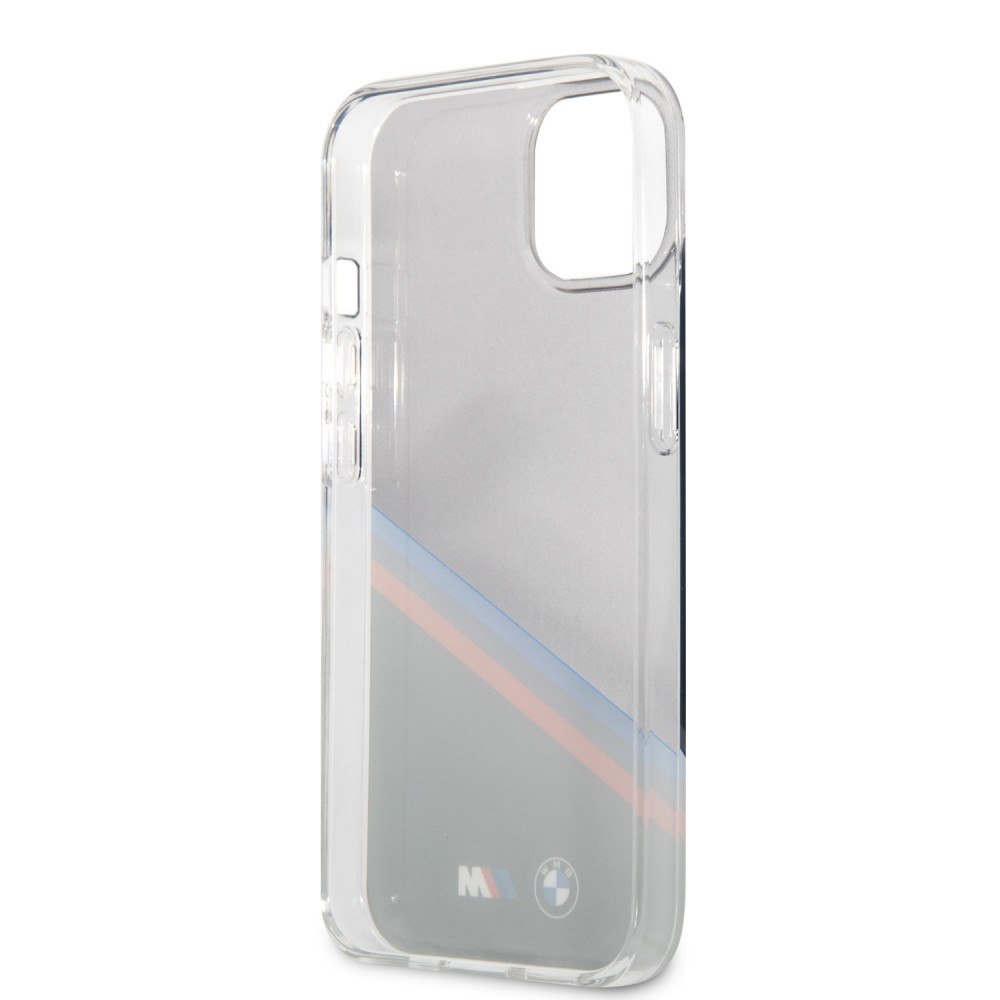 BMW iPhone 13 Mini Silicone Tricolor Stripes (BMHCP13SMHLPK) hátlap, tok, átlátszó