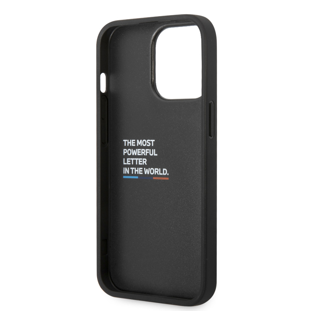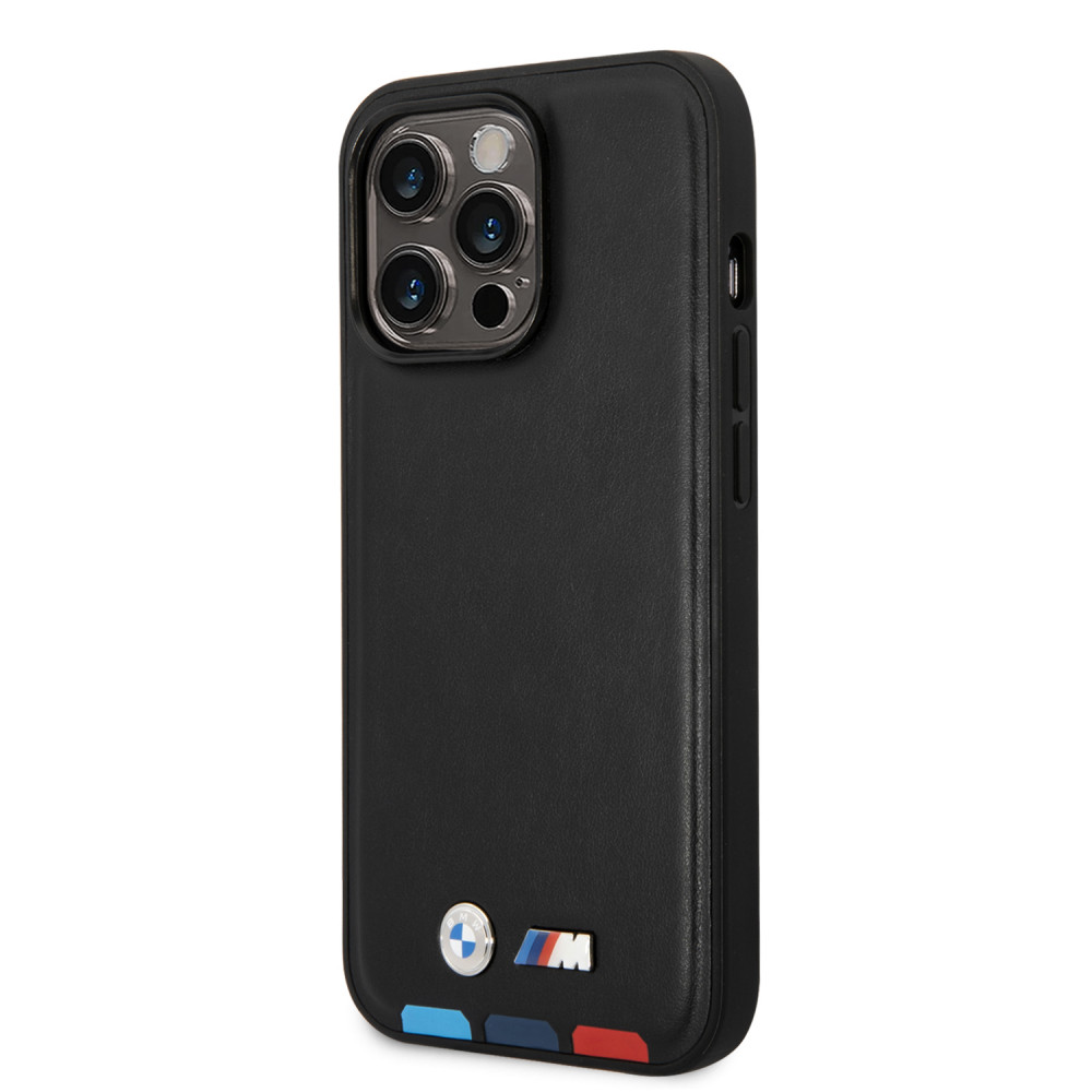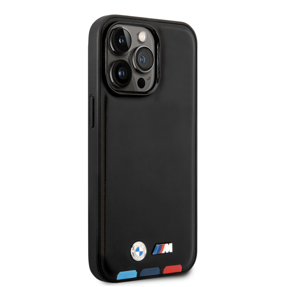 BMW iPhone 14 Pro Leather Stamp Tricolor (BMHCP14L22PTDK) hátlap, tok, fekete