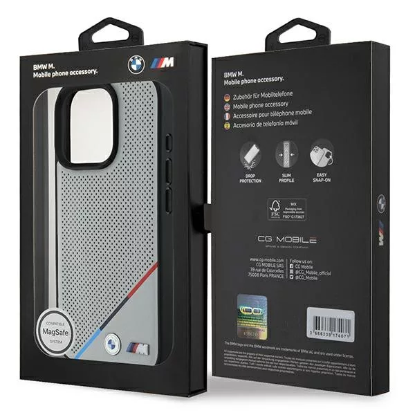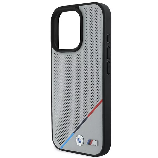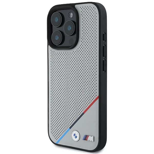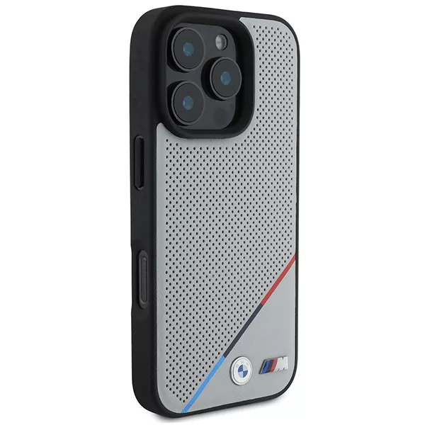BMW iPhone 16 Pro M Perforated Tricolor Line(BMHMP16L23PUPDG) MagSafe hátlap, tok, szürke