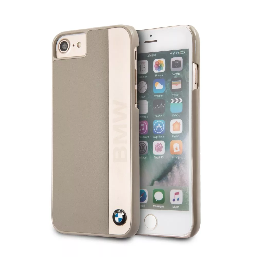 BMW iPhone 6/7/8 Signature Alu & Leather eredeti bőr (BMHCP7BALTA) hátlap, tok, bézs-arany