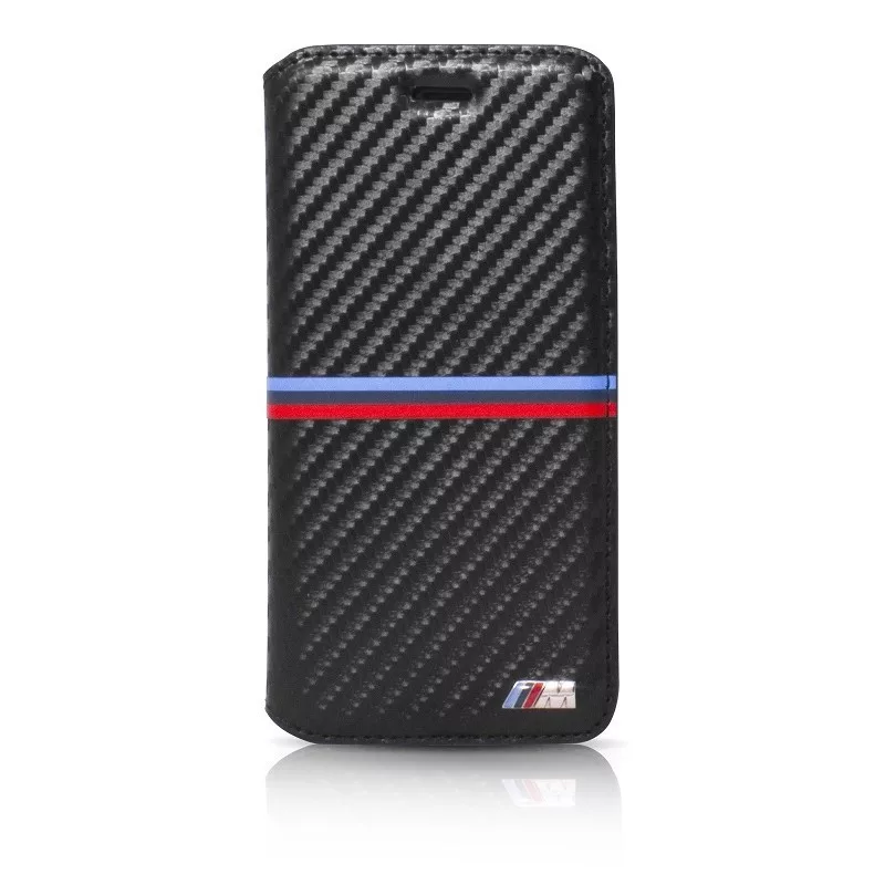 BMW iPhone 6 Plus/6S Plus M Sport Carbon Inspiration Stripe Horizontal (BMFLBKP6LMSSCA) oldalra nyíló tok, fekete