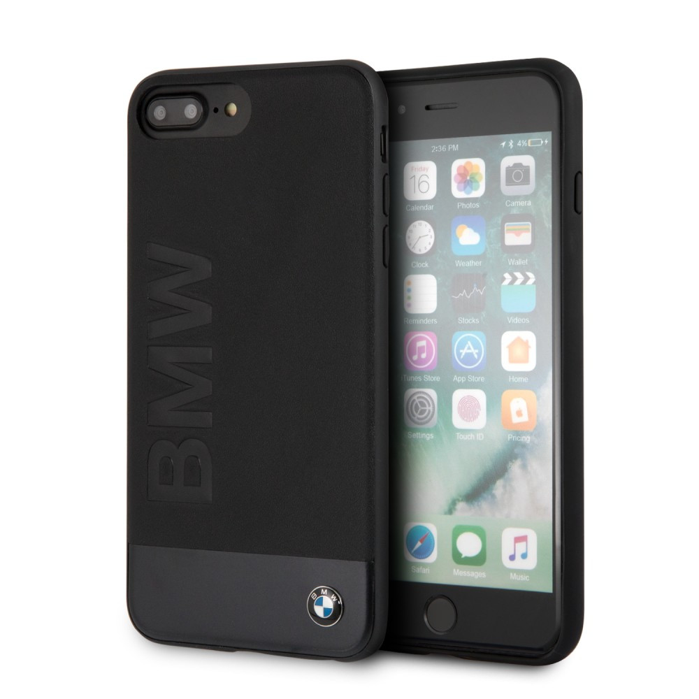BMW iPhone 6 Plus/7 Plus/8 Plus Genuine Leather and Alu Plate (BMHCI8LSGLALBK) hátlap, tok, fekete