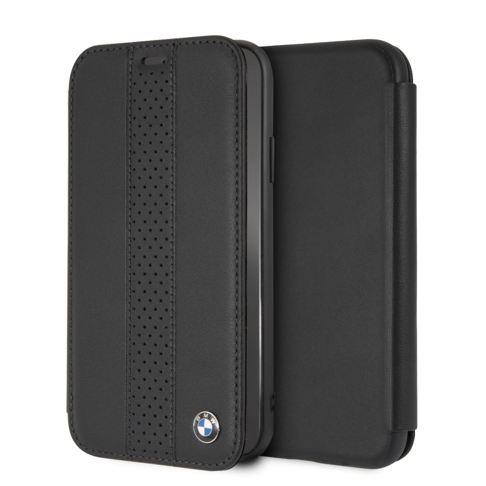 BMW iPhone Xr Perforated Center Stripe (BMFLBKI61PLCBK) eredeti bőr oldalra nyíló tok, fekete