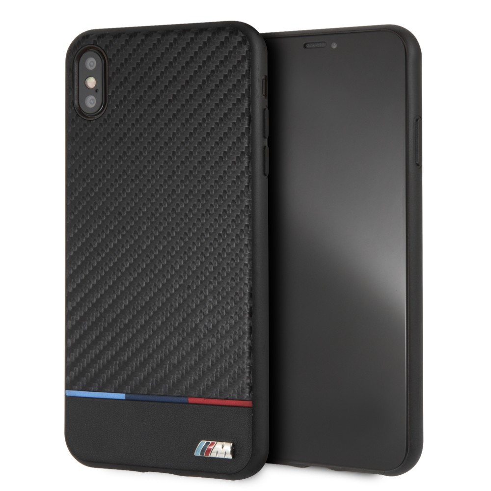 BMW iPhone Xs Max Carbon Tricolor Stripe (BMHCI65PUCARTCBK) hátlap, tok, fekete