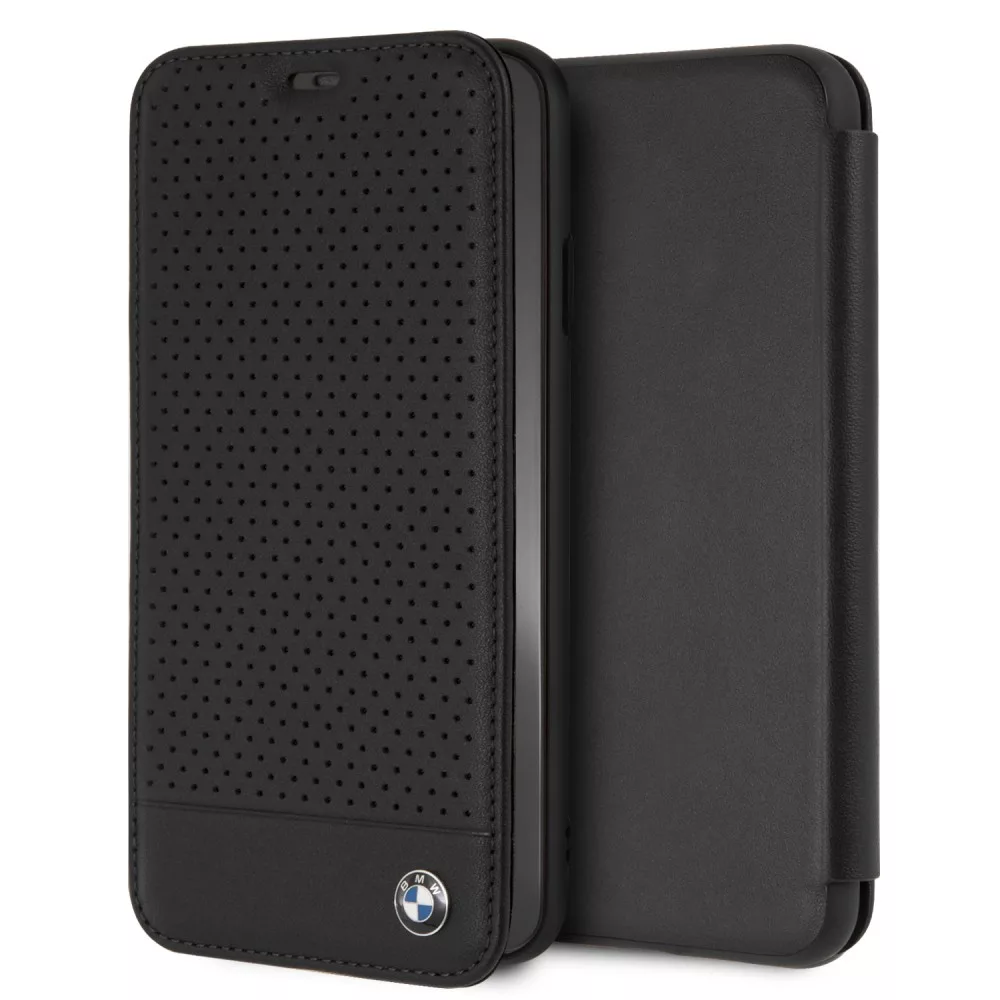 BMW iPhone Xs Max Signature Perforated (BMFLBKI65PEBOBK) eredeti bőr oldalra nyíló tok, fekete
