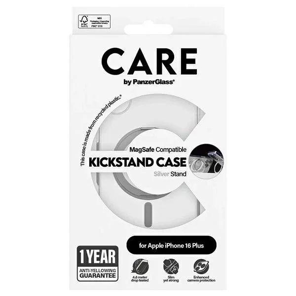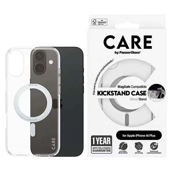 CARE by PanzerGlass Feature Kickstand Case iPhone 16 Plus 6.7" MagSafe tok, ezüst 1327