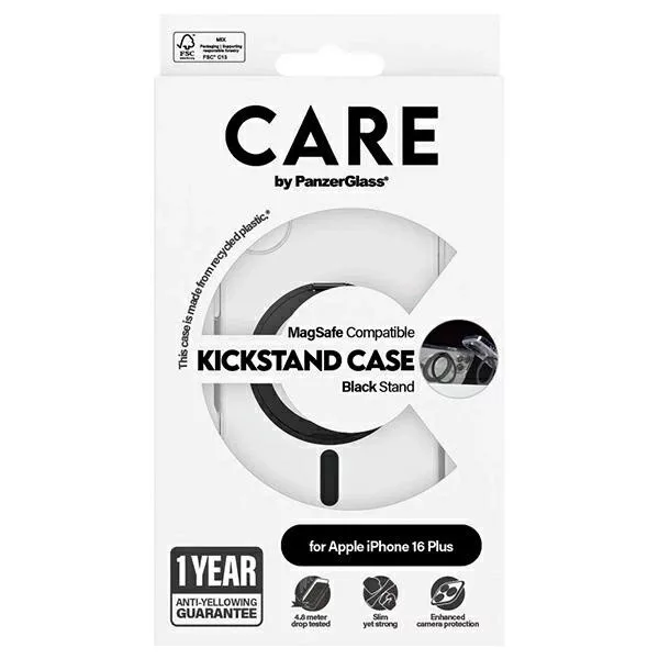 CARE by PanzerGlass Feature Kickstand Case iPhone 16 Plus 6.7" MagSafe tok, fekete 1323