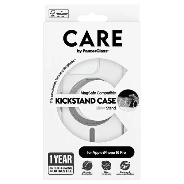 Újrahasznosított anyagokból készült, a tok kivételes védelmet, vezeték nélküli töltést és MagSafe-kompatibilitást biztosít. A terméket 4,8 m-es magasságból történő ejtésre tesztelték, beleértve az éleket is; a gyártásnál alkalmazott speciális anyag megakadályozza, hogy a tok sárguljon.