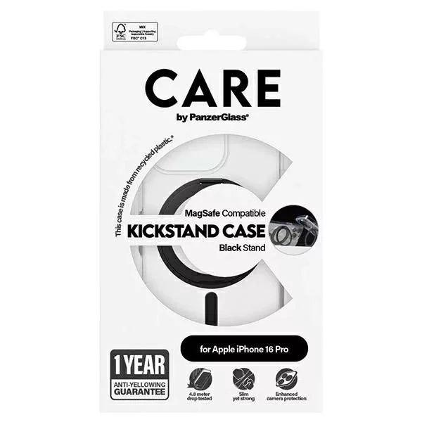 CARE by PanzerGlass Feature Kickstand Case iPhone 16 Pro 6.3" MagSafe tok, fekete 1322
