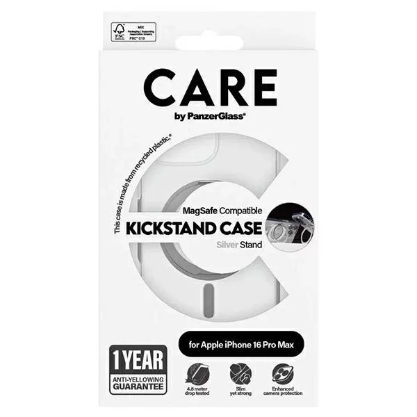 CARE by PanzerGlass Feature Kickstand Case iPhone 16 Pro Max 6.9" MagSafe tok, ezüst 1328