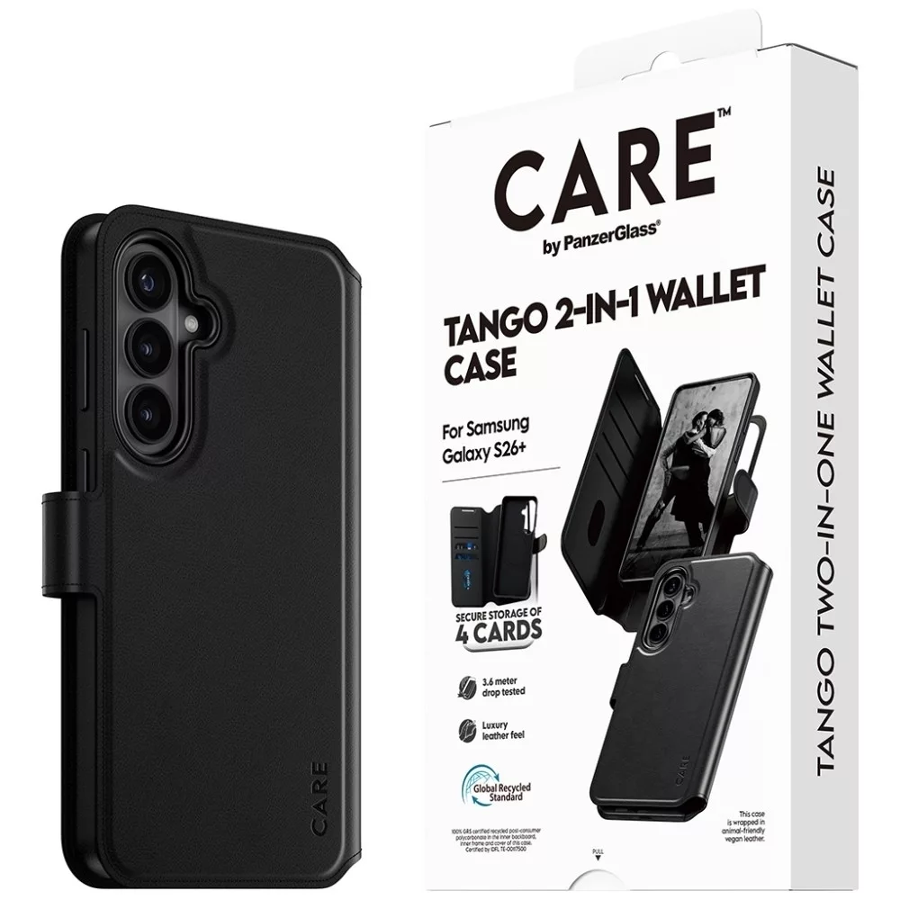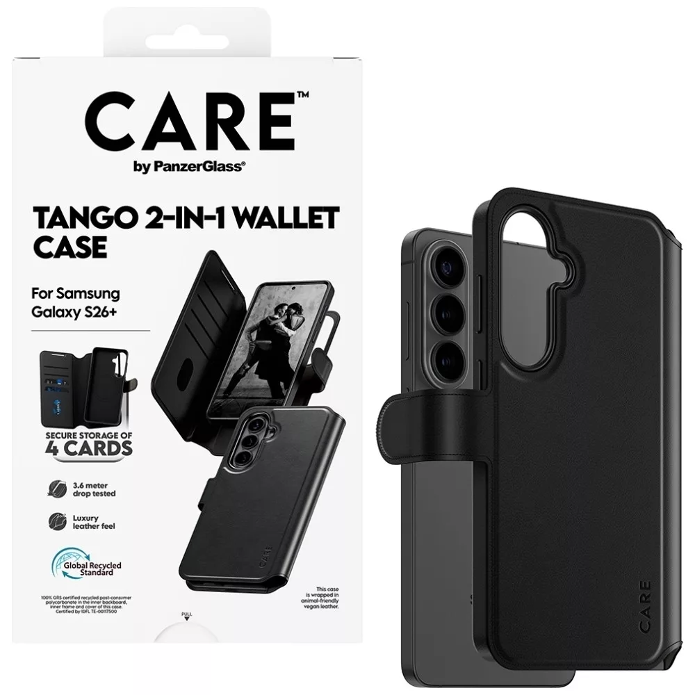 CARE by PanzerGlass Tango 2in1 Wallet Samsung Galaxy S26 Plus tok, fekete