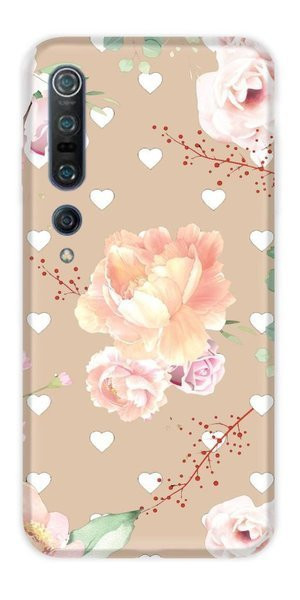 Casegadget Xiaomi Mi 10/Mi 10 Pro fehér szívek és rózsák mintás, tok, hátlap, színes