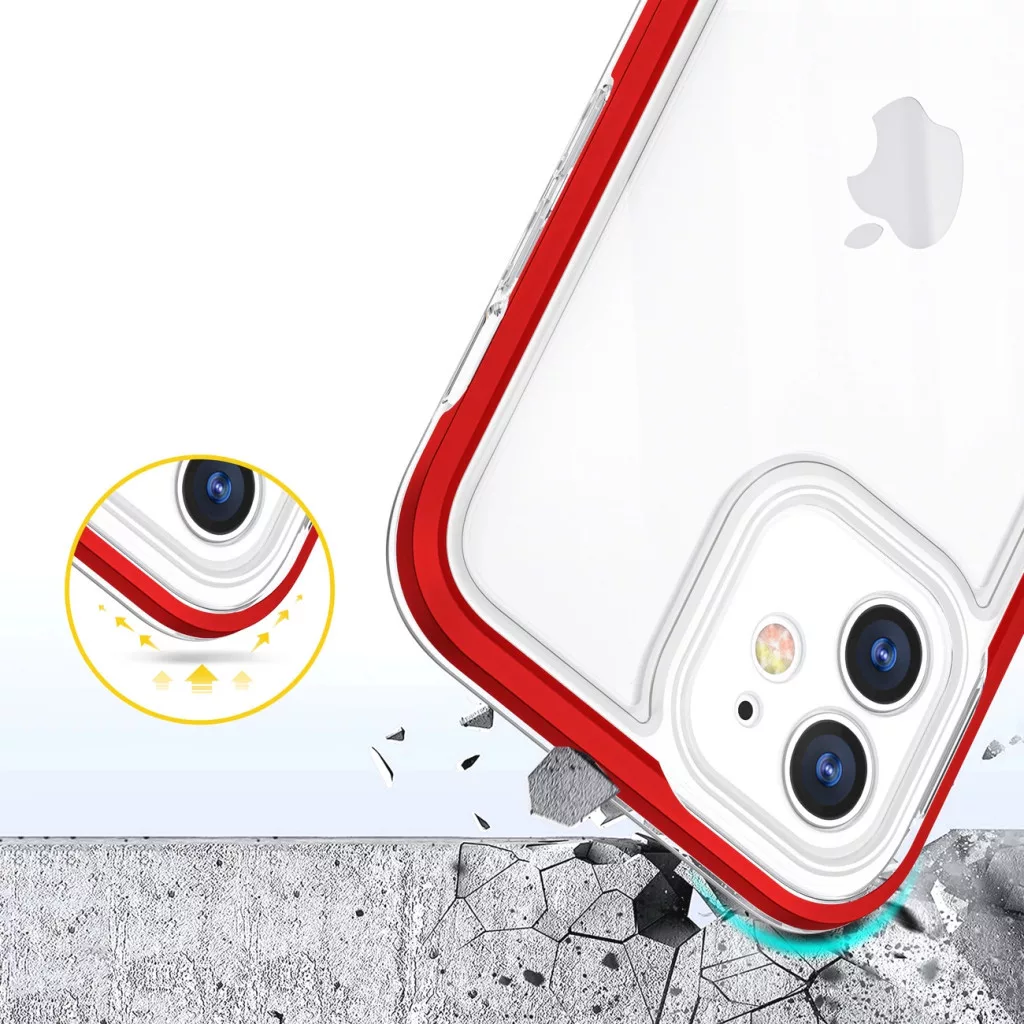 Clear 3in1 Case iPhone 12 ütésálló hátlap, tok, átlátszó-piros
