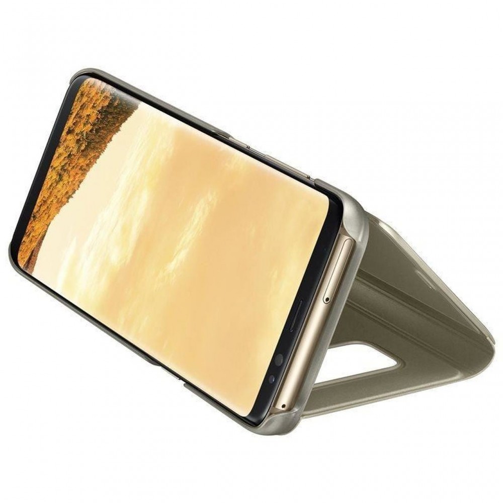 Clear View Case cover iPhone 13 Pro Max oldalra nyíló tok, arany