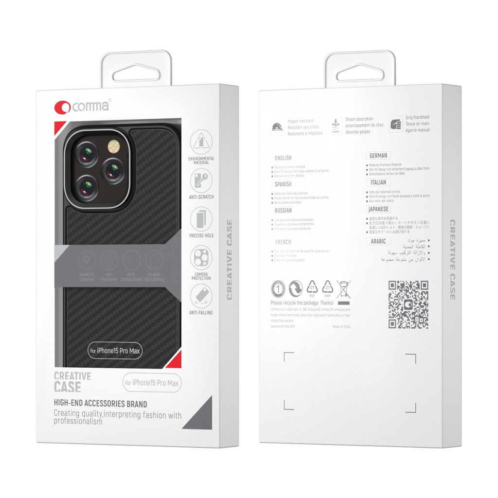 Comma case Kevlar Mag MagSafe hátlap, tok iPhone 15 Pro Max, fekete
