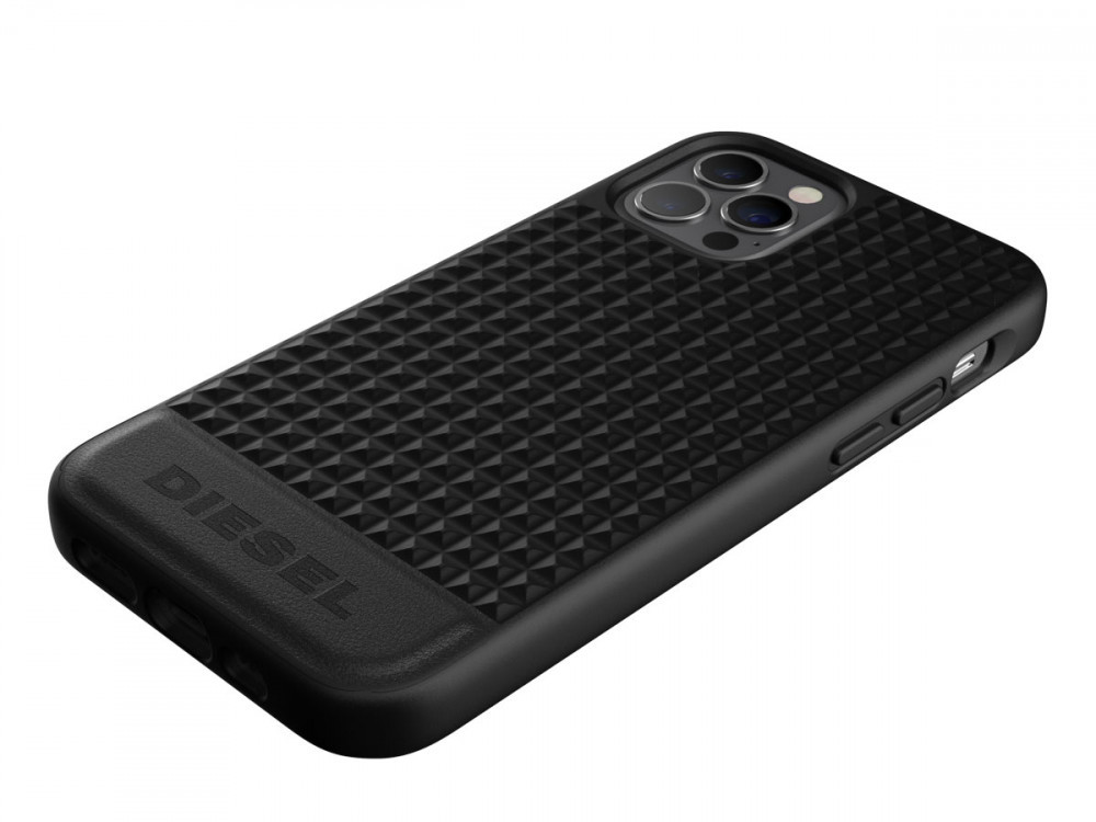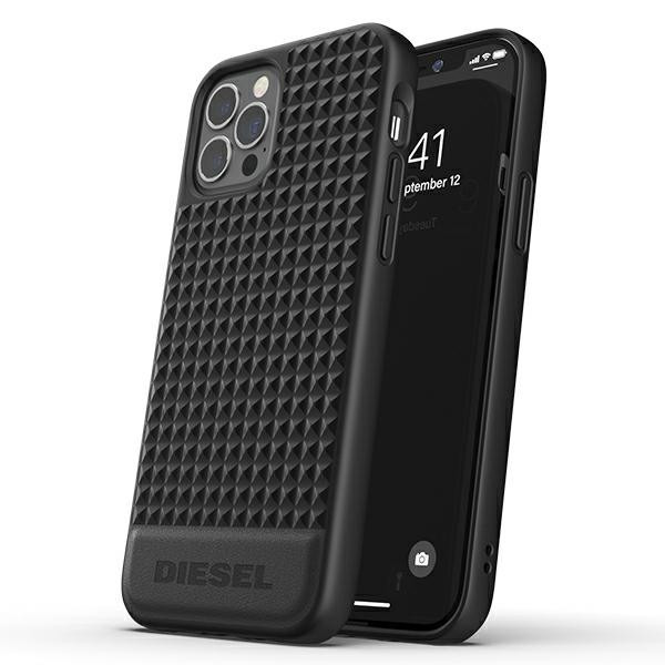 Diesel Moulded Case Premium Leather Studs iPhone 12/12 Pro hátlap, tok, fekete