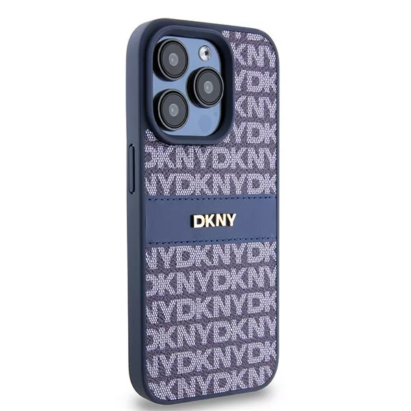 DKNY DKHCP15LPRTHSLB iPhone 15 Pro 6.1" hátlap, tok Leather Mono Stripe & Metal Logo, kék