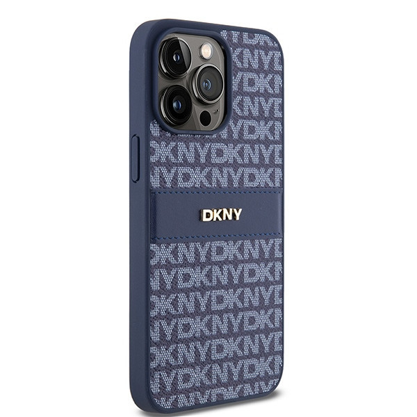 DKNY DKHCP15XPRTHSLB iPhone 15 Pro Max 6.7" hátlap, tok Leather Mono Stripe & Metal Logo, kék