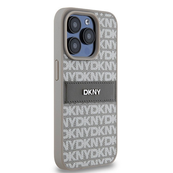 DKNY DKHCP15XPRTHSLE iPhone 15 Pro Max 6.7" hátlap, tok Leather Mono Stripe & Metal Logo, bézs