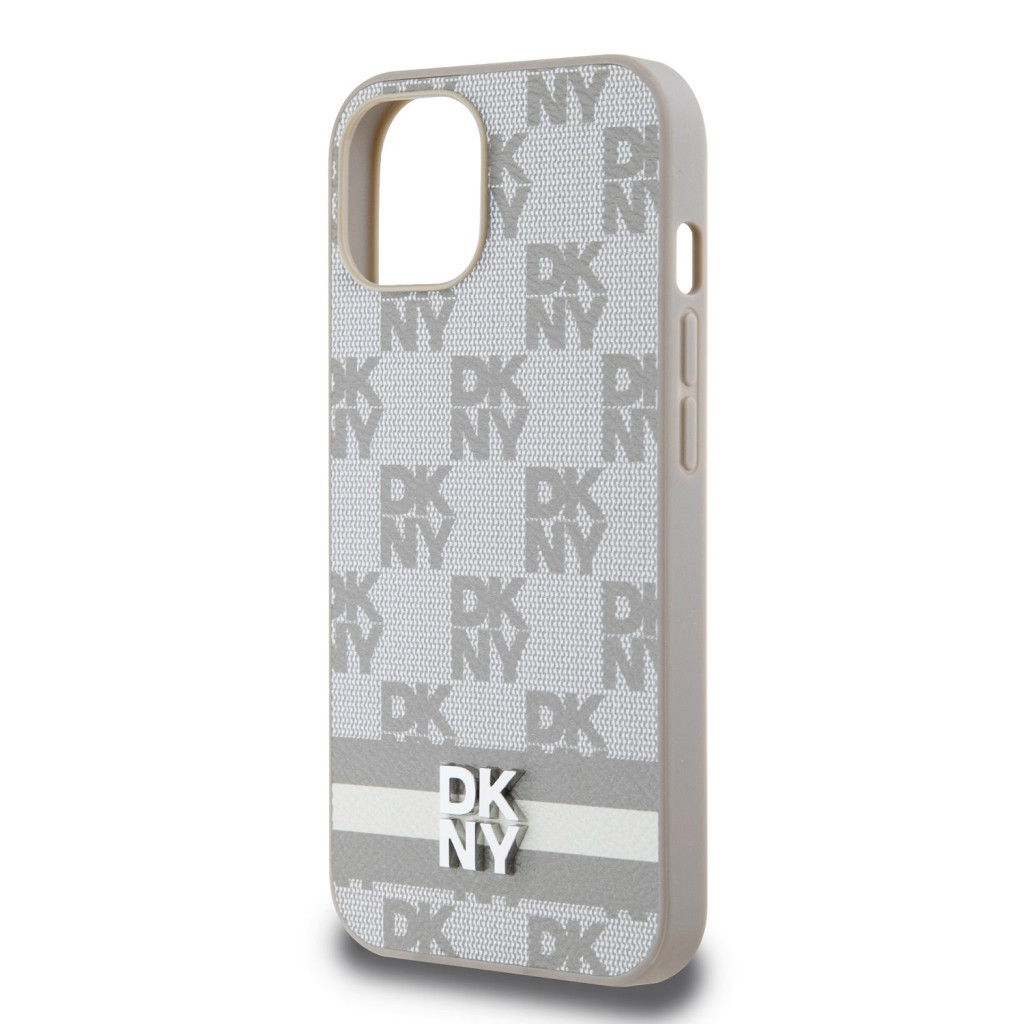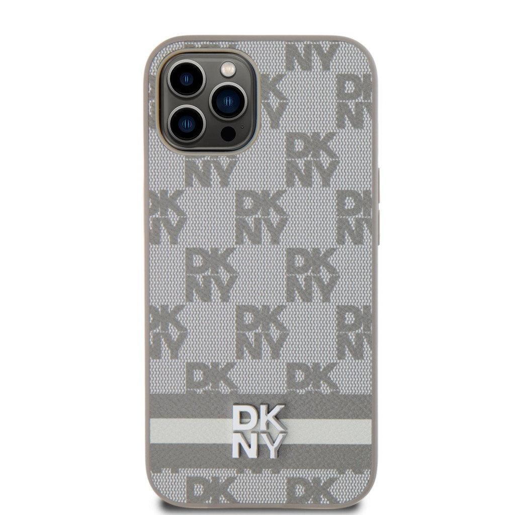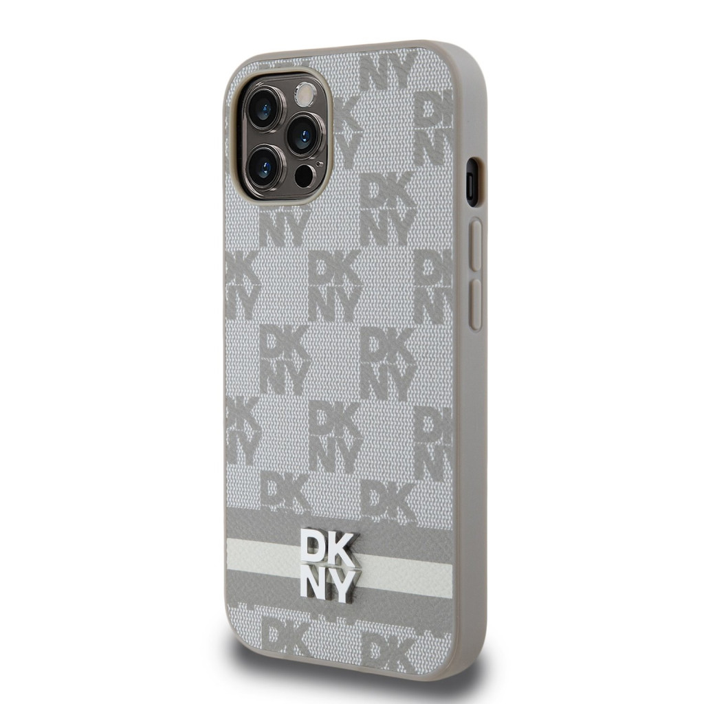DKNY iPhone 12/12 Pro PU Leather Checkered Pattern and Stripe DKHCP12MPCPTSSE hátlap, tok, bézs