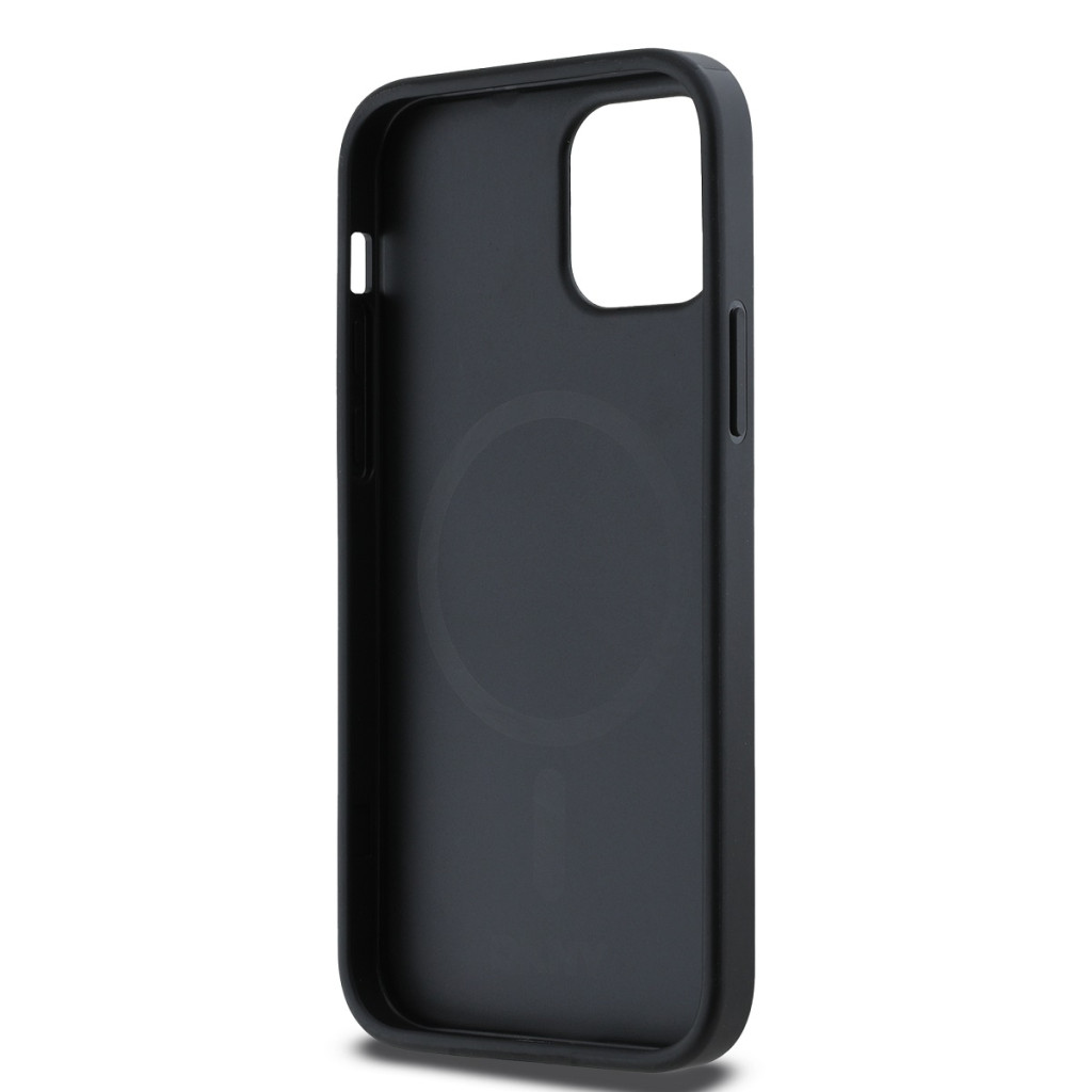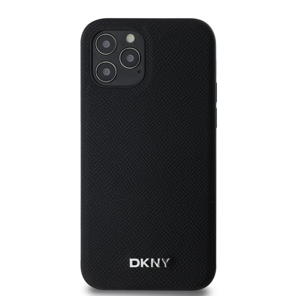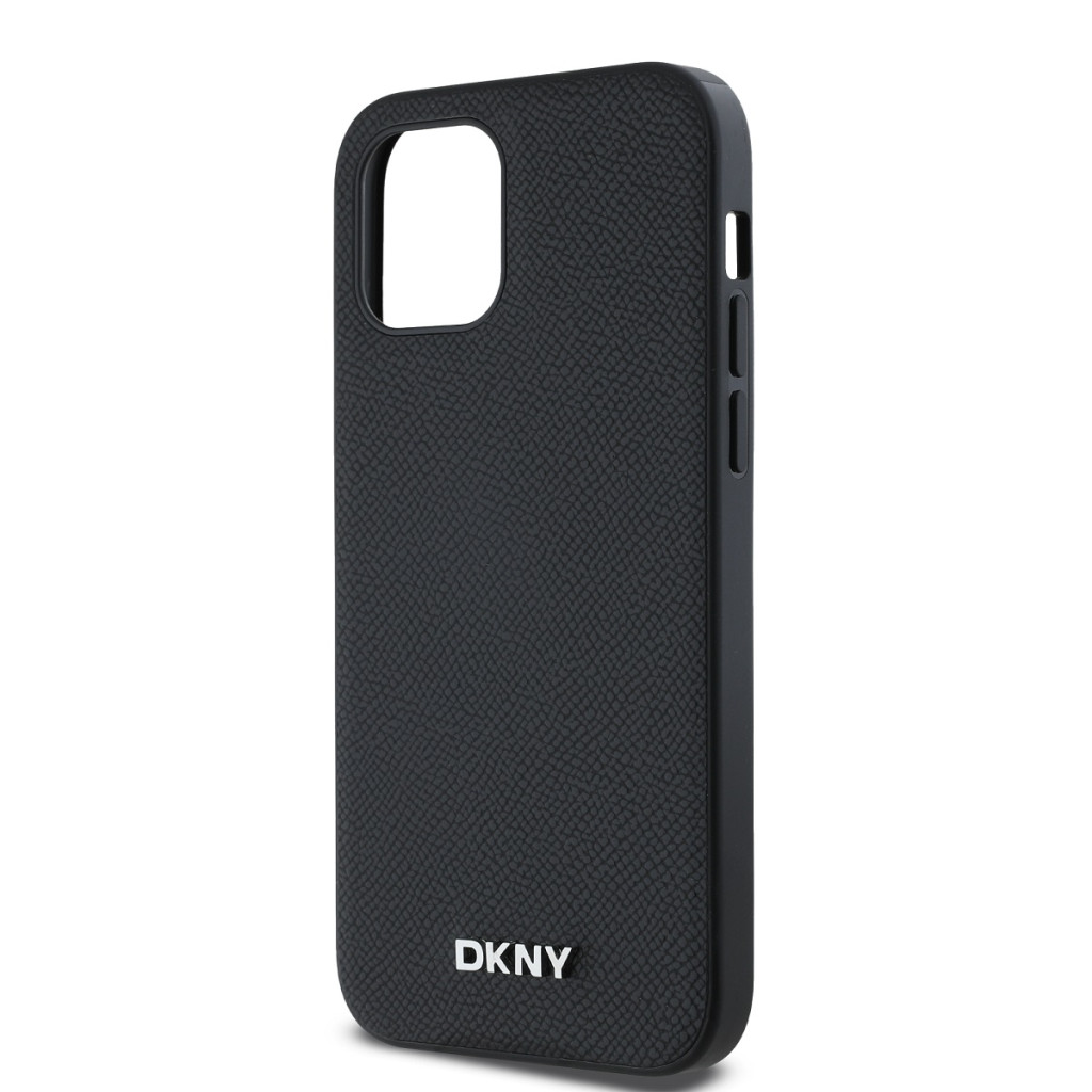 DKNY iPhone 12/12 Pro PU Leather Silver Metal Logo Magsafe kompatibilis DKHMP12MPGHLMK hátlap tok, fekete