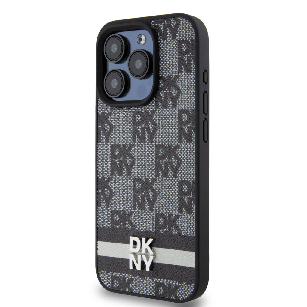 DKNY iPhone 13 Pro PU Leather Checkered Pattern and Stripe DKHCP13LPCPTSSK hátlap, tok, fekete